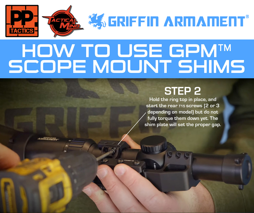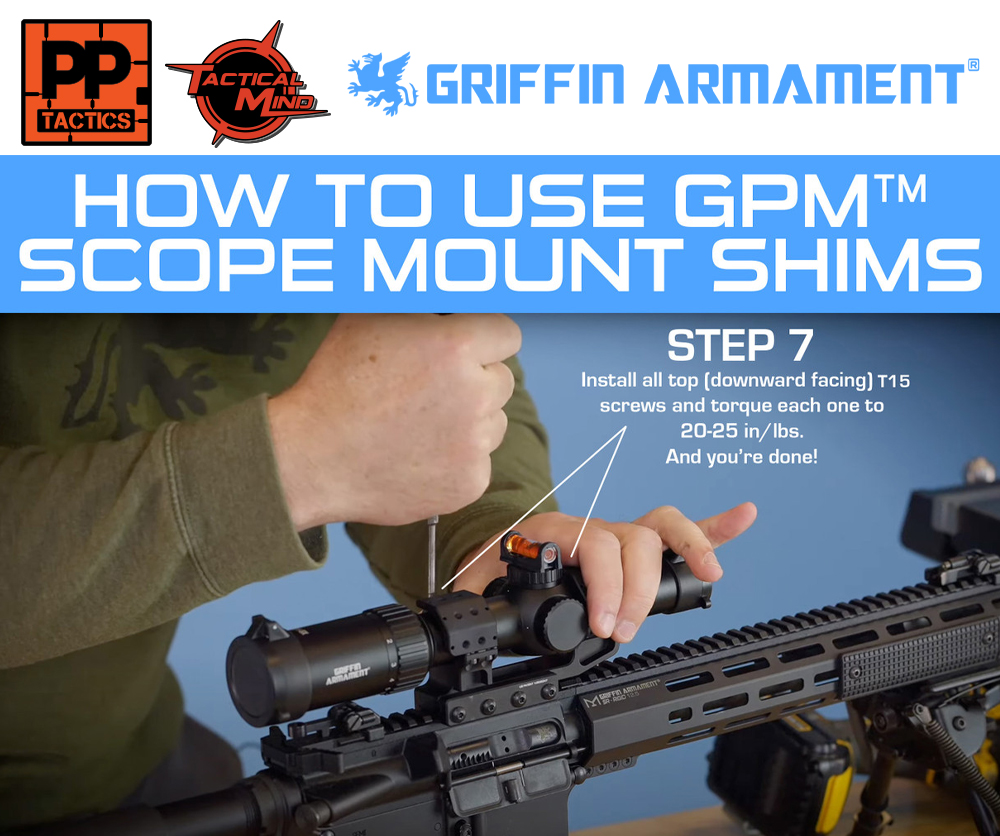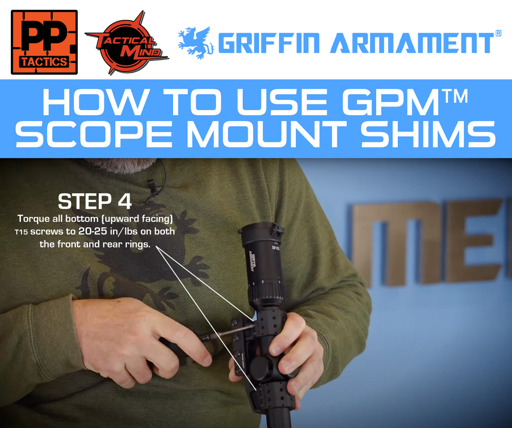 - Ring Shim Set (allows bottom ring screws to be torqued to 20 in/lbs before attaching optic mount to rail, and affords leveling afterward without a need to re-torque lower screws)
