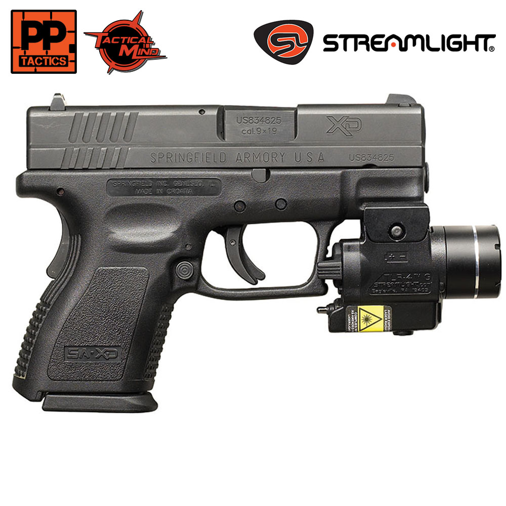 Designed for subcompact and compact weapons, this compact tactical rail-mounted light features an integrated, visible green aiming laser for high visibility long-range targeting, even in daylight.